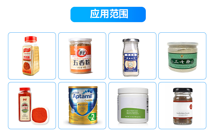 自動定量粉劑灌裝機該機是一種經濟型粉劑和小顆粒自動灌裝機,可以完成瓶的自動定位,灌裝和計量。它由一個灌裝頭,一條連接帶和—個定位裝置組成。或步進)電機,PLC和蝕摸屏控制,操作簡便,穩定性高。它可以與開瓶器,封蓋機和貼標機結合形成一祭完整的灌裝線。適用于包裝粉末和小顆粒物料,例如粉末,小顆粒,獸藥,葡萄糖,調味品,體飲料,碳粉,滑石粉,農藥等。