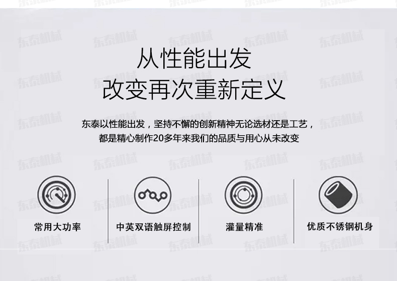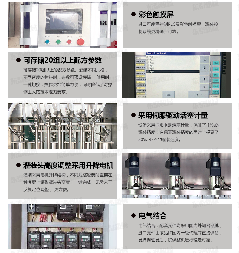 3、該機機身、機架由出色不銹鋼制成,物料桶到灌裝頭使用食品級塑料管連接,符合食品衛生要求,整機設計簡潔大方,清洗方便