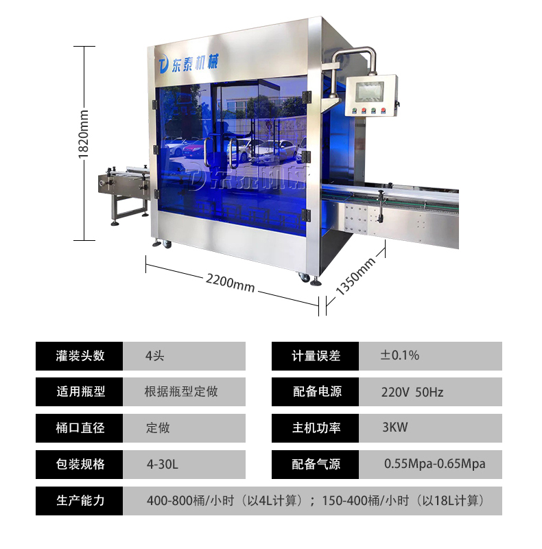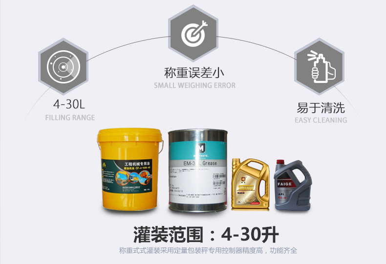 機油灌裝機適用于對4kg-25kg汽車用品類產品:潤滑油、防凍液、車用尿素等液體灌裝。自動完成計數進瓶、計重量灌裝、輸送出瓶等一系列操作。 特別適用于潤滑油、水劑、食用油的定量灌裝,是食品,醫藥,化妝品以及精細化工等行業的理想灌裝機。本機采用可編程控制器(PLC)、高速工控組態軟件進行實時監控的控制,使用調節方便。整機按GMP標準要求制作,各管路連接采用快裝方式,拆卸清洗方便,與物料接觸部位及外露部位均采用不銹鋼制造。整機安全、環保、安全、美觀、能適應各種不同環境工作。