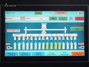 2.灌裝采用電機升降結構,不同規(guī)格灌裝時直接在觸摸屏上調整灌裝頭高度,一鍵完成,無